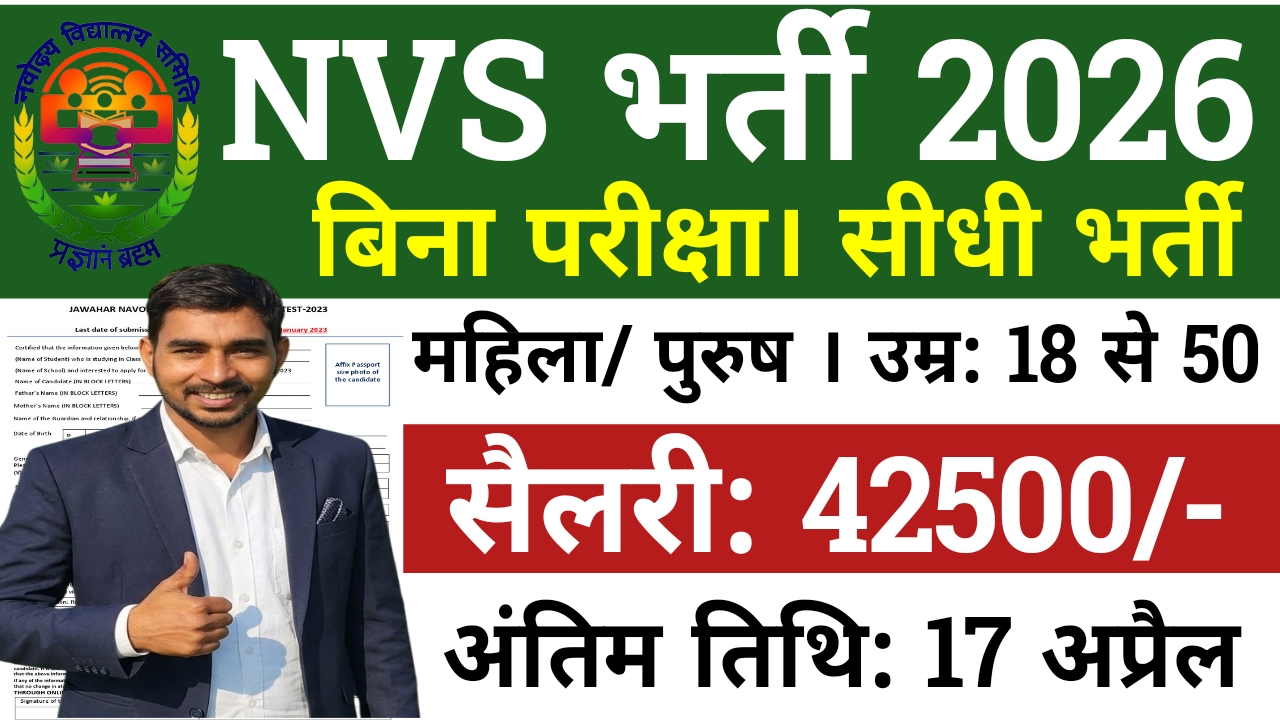 इस लेख में आपको NVS Teacher Recruitment 2026 से जुड़ी हर जरूरी जानकारी सरल भाषा में दी जा रही है—जैसे आवेदन प्रक्रिया, योग्यता, आयु सीमा, चयन प्रक्रिया और महत्वपूर्ण तिथियां।